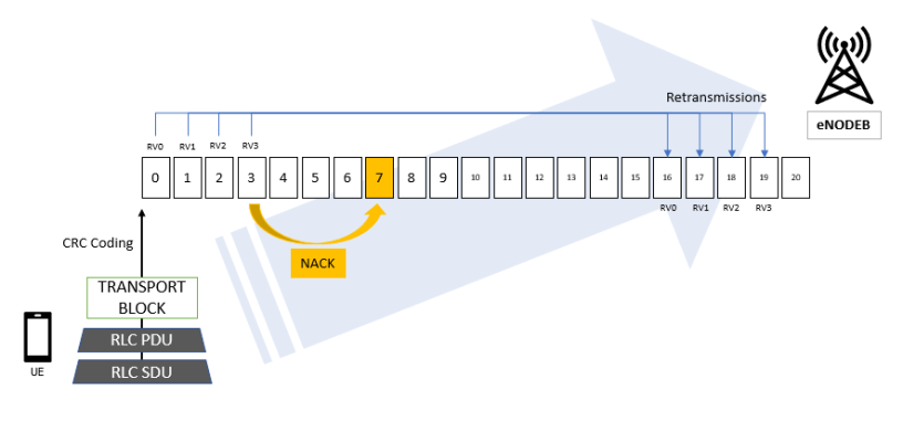 TTI bundling in LTE does not escape from the definition above. LTE uses HARQ (Hybrid Automatic Repeat Request) to deal with air interface transmission errors. HARQ is a combination of Automatic Repeat Request (ARQ) with Forward Error Correction (FEC). In other words, the data wrongly received is retransmitted while new data is added. In order to know if the transmission has errors or not, ACK/NACK flags are utilized. This system works well with normal data, but is not enough for delay sensitive services such as VoLTE. With TTI bundling the UE can use in a single grant for PUSCH, 4 consecutive TTI for transmitting while is in a VoLTE session. The data the UE will transmit in these four consecutive TTI will be exactly the same but will differ one of the other by the redundancy version (RV).