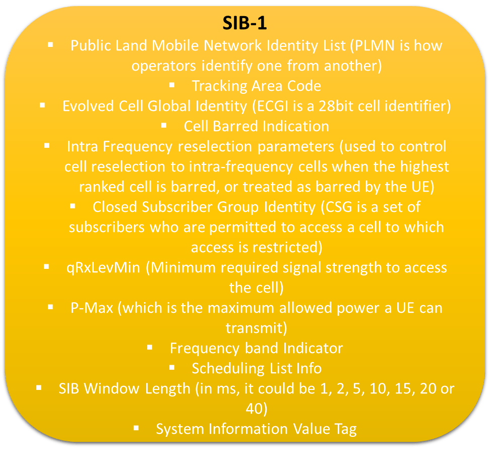 SIB-1 Contains essential information that the UE uses to evaluate if it is allowed to access a cell or not. Also defines the scheduling of other system information blocks.