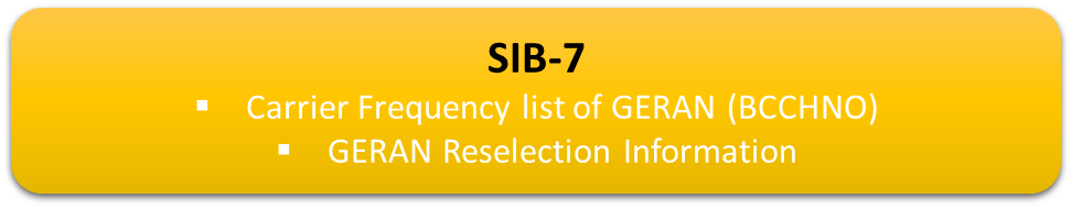 SIB-7 contains all the relevant information required for reselection inter-RAT GERAN cells. Including cell reselection parameter for each frequency.