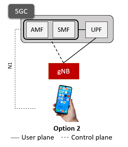 Option 2: This option contains both a 5G Core and a 5G NR gNB.