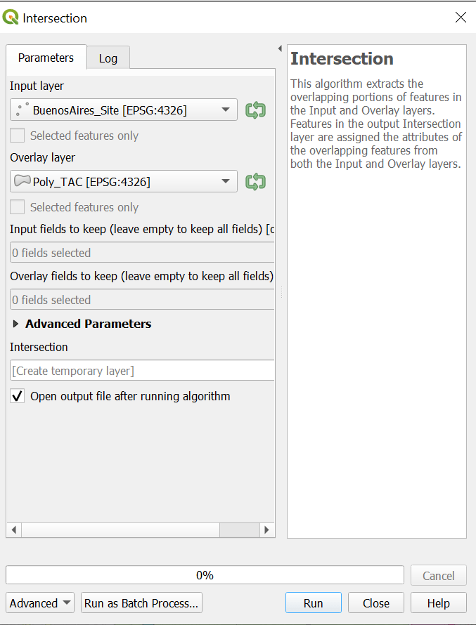 Input layer is the site map (points) and the Overlay Layer is the polygon map. After run it, you will get a new layer called intersection. Lets right click on it and select “Open Attribute Table”